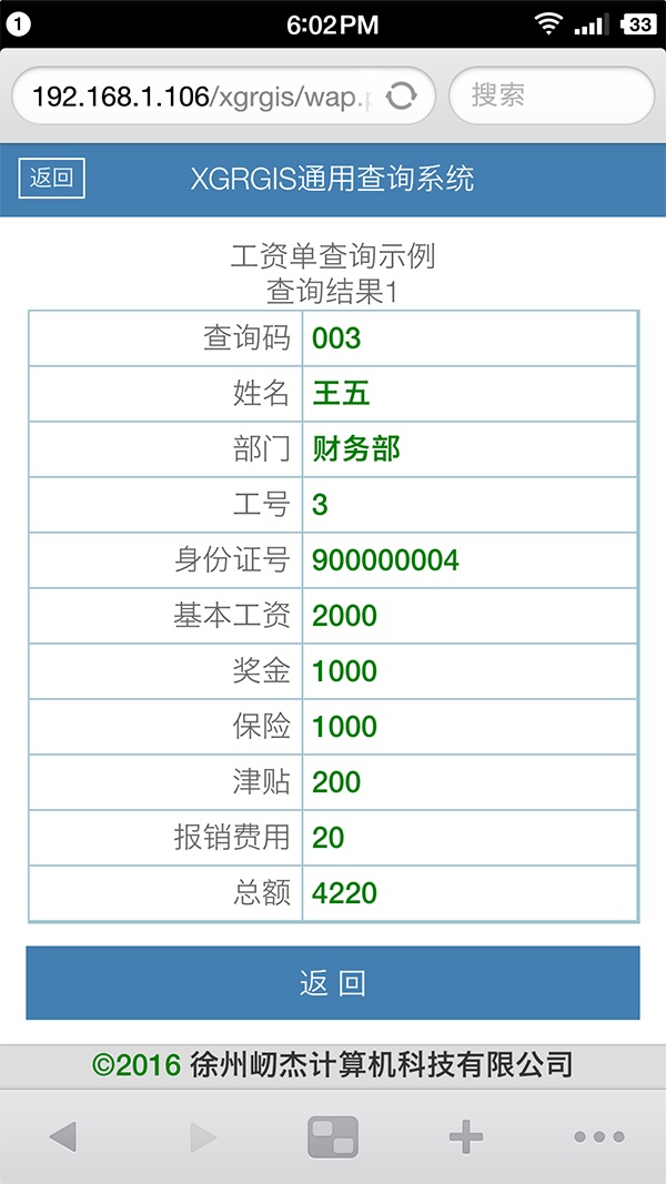 XGRGIS是一個(gè)極為簡單卻非常方便的通用查詢系統(tǒng),可用于幾乎所有Excel單二維數(shù)據(jù)表查詢,只需修改查詢條件和相應(yīng)文字即可用于類似工資單查詢、水電費(fèi)查詢、成績單查詢、授權(quán)碼查詢、物業(yè)費(fèi)查詢等場景。